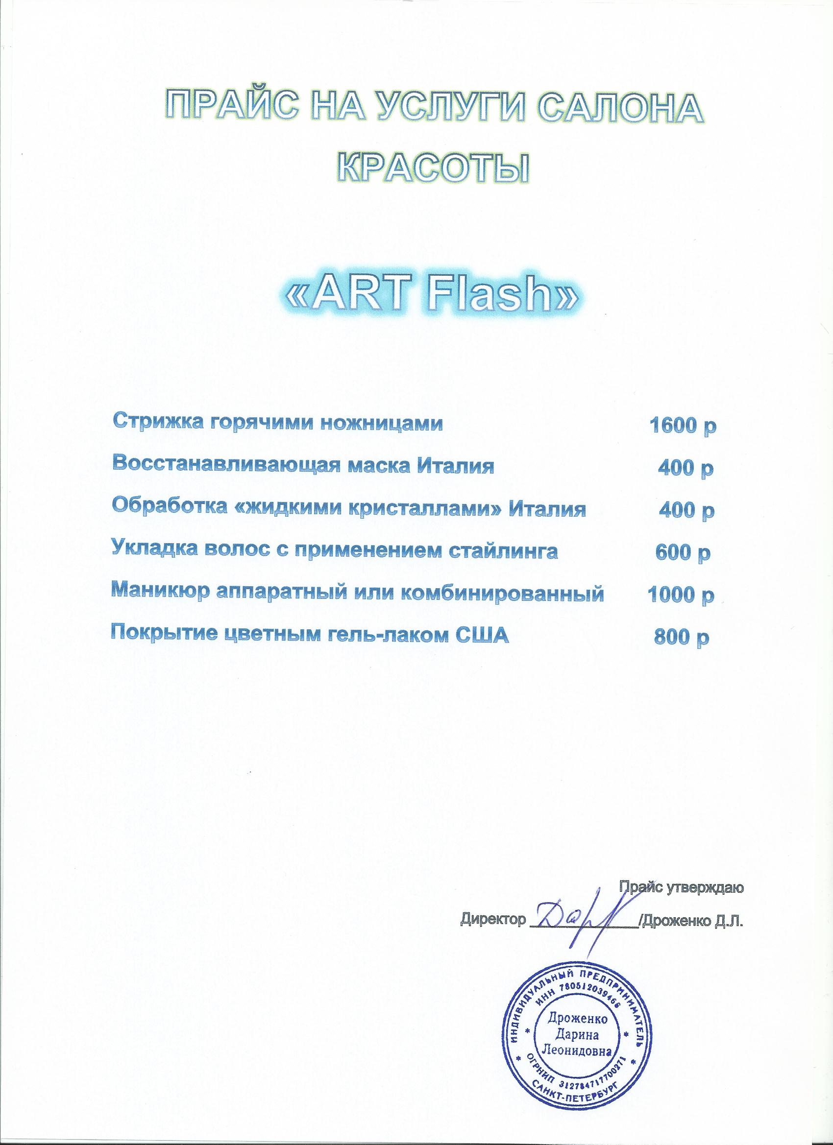 - Прайс-лист салона красоты Art Flash