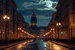 - загадочный Невский проспект, украшенный вечерними огнями;
